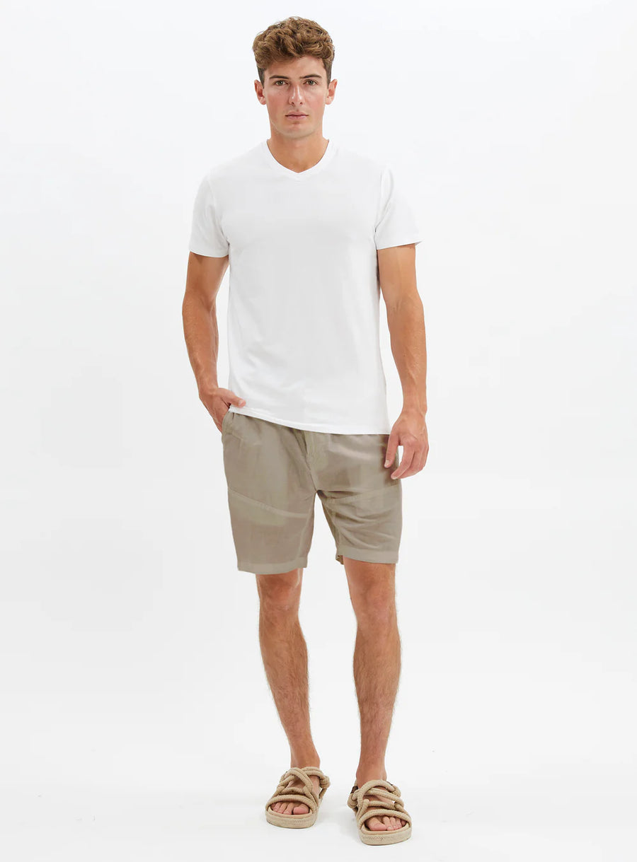 Linen-cotton shorts, 10 inches in length, are a comfortable and versatile pair of shorts crafted from a blend of linen and cotton fabrics. The combination of linen and cotton brings together the breathable and lightweight qualities of linen with the softness and durability of cotton. This blend makes the shorts suitable for warm weather while providing a comfortable and stylish option.