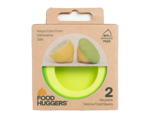 This unique set of two Food Huggers will keep your fruits and veggies fresh longer. You can also use them to seal open cans, jars and convert a glass into a quick and easy well sealed container. Food Huggers nest compactly for space saving storage and organization.