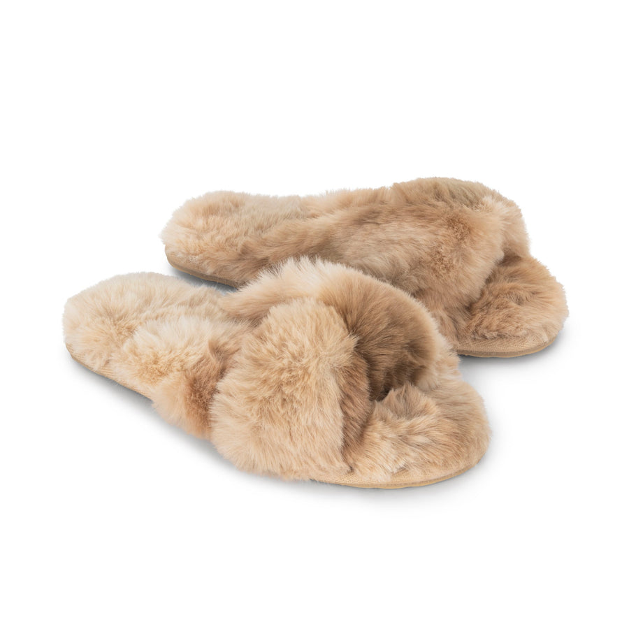 The contemporary crisscross design and plush faux fur make these slippers a stylish and comfortable addition to your favourite stay at home outfit.