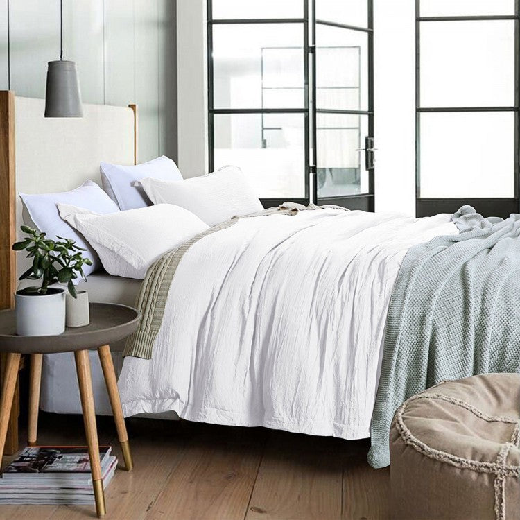 Stone Washed Bamboo Duvet Cover Set White Queen