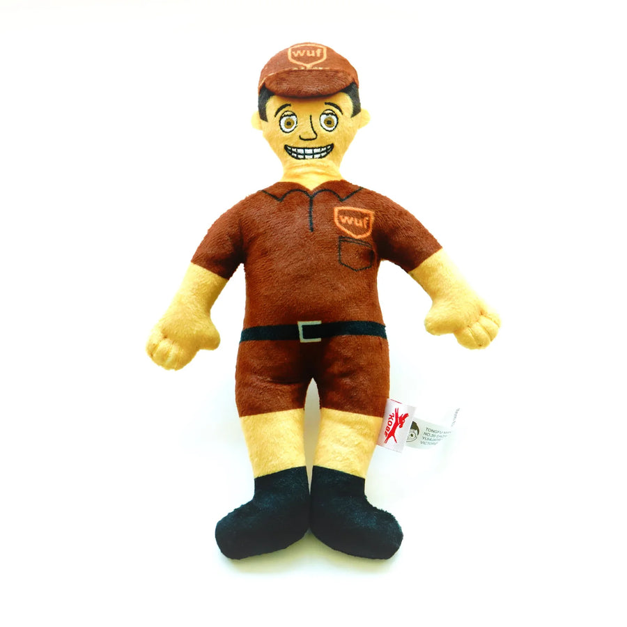 Our dog plush toy is inspired by your favorite delivery man. When pressed, the squeaker and crinkle sound maker inside will excite your dog.
