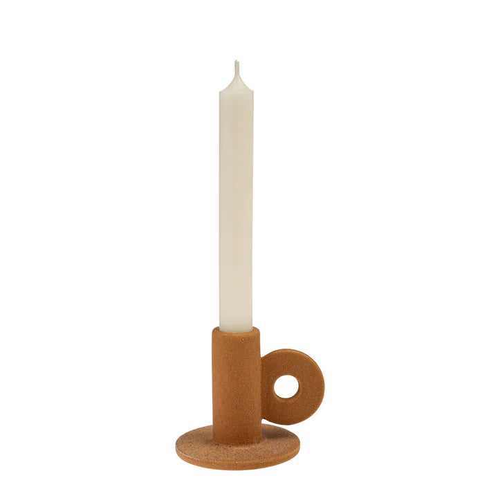 The Cruz Candle Holder is characterized by a contemporary shape and balanced with earthy texture and warm hued colours. Style it layered atop a decorative tray, books, or alone for a more minimal look. Complete it with a tapered candle for an inviting feel you will treasure year round.