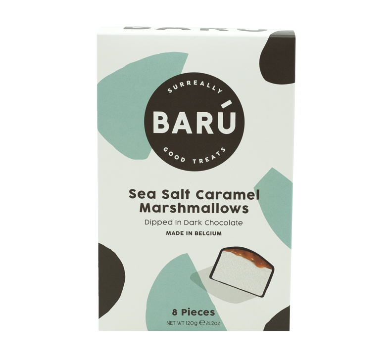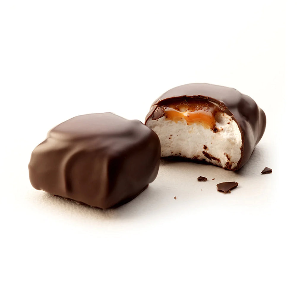 Gourmet vanilla bean marshmallows covered in dark chocolate with a homemade sea salt caramel topping, all individually wrapped for freshness. A decadent dessert with coffee or tea.