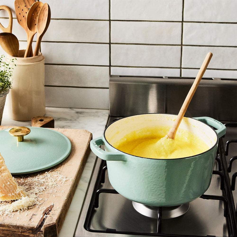 It's the California-designed enameled cast iron Dutch oven that's the ideal size for 2-person meals. Use it as a stock pot, a casserole dish, or a steamer pot that can effortlessly go from stove, to oven, to table. Designed to inspire newcomers and satisfy pros, our enameled cast-iron cookware is non-toxic and dishwasher friendly.