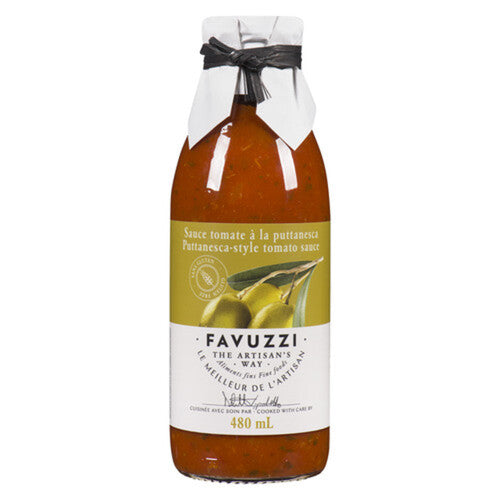 Our hearty puttanesca-style tomato sauce contains pine nuts as well as capers and green olive pieces, giving it a flavour and fragrance that recall a blend of mustard, black pepper and lemon.