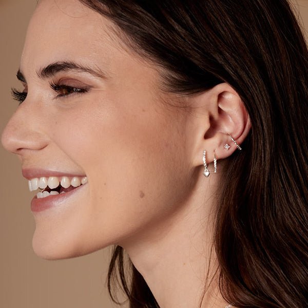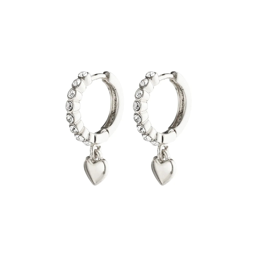 These Preciosa crystal embedded huggie hoops hold a small heart pendant. Indulge in this piece of everyday luxury. Look great stacked with your other favourite huggie hoops or studs!