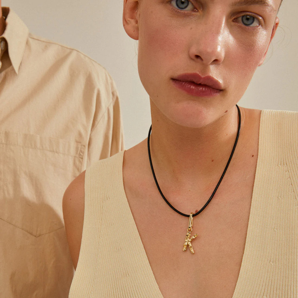 - Gold-plated charm with rustic K
