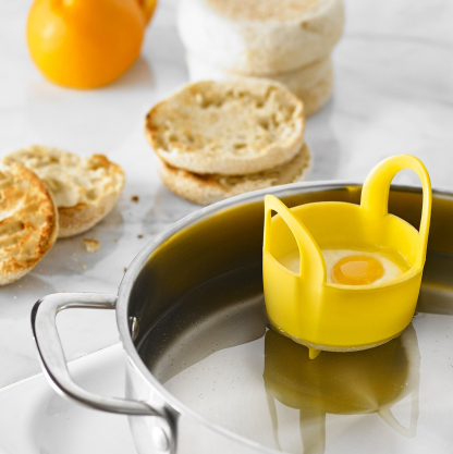 This cute little bundle of convenience is just what you needed! All you have to do is lightly oil the inside of your poacher, break your egg and pour it in, then place the poacher inside a skillet of boiling water. With its oversized handles you can slip the poacher seamlessly from pot to plate and easily releases contents thanks to a non-stick surface. For those cooks who want to break out of their shell a little: it's great for baking, and as a jelly mould, too!