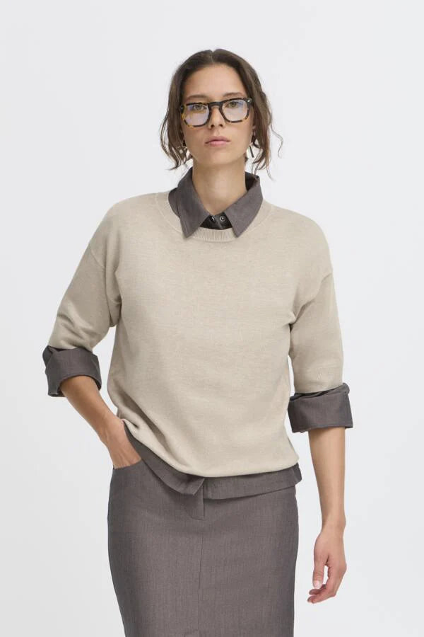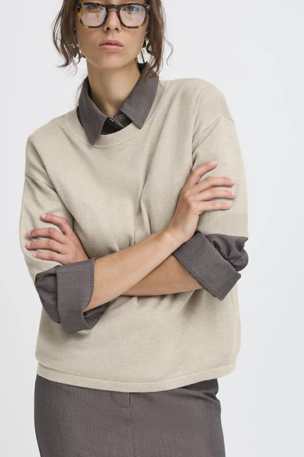 Discover this B.Young top, combining softness and comfort thanks to its 70% viscose and 30% polyamide composition. Its elbow-length sleeves add a touch of elegance while ensuring optimal freedom of movement. Perfect for a chic yet casual look, this sweater will accompany you in style throughout the day.