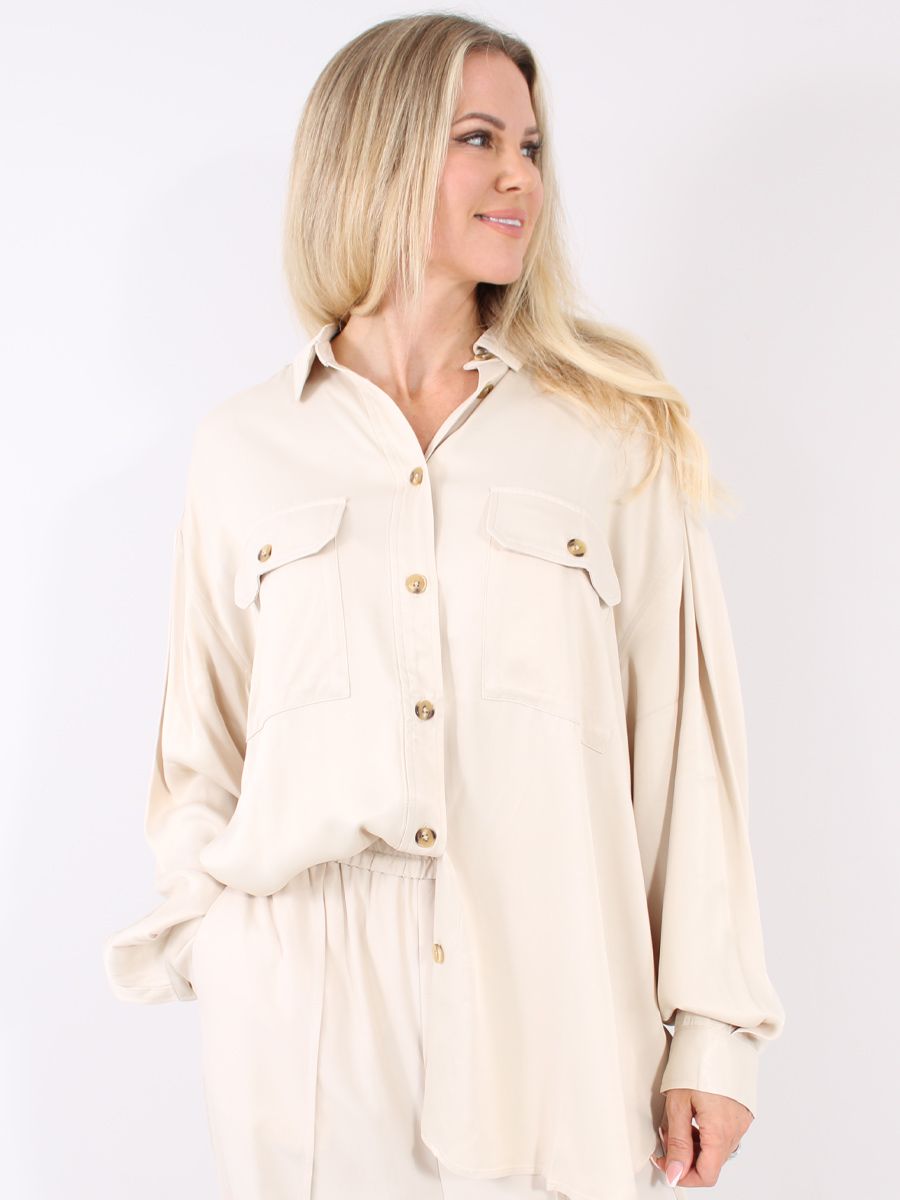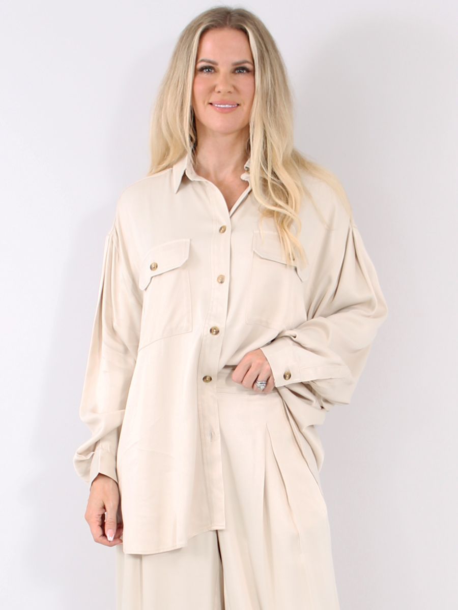 Add a little sheen to your wardrobe with this Brissa Satin Shirt from Part Two. Crafted from a beautiful satin fabric, features include a relaxed fit, shirt collar, front opening with button closing, curved hem, long sleeves with buttoned cuffs and two front buttoned flap pockets. This versatile shirt can be worn open over a tee or tucked in - wear it your way.