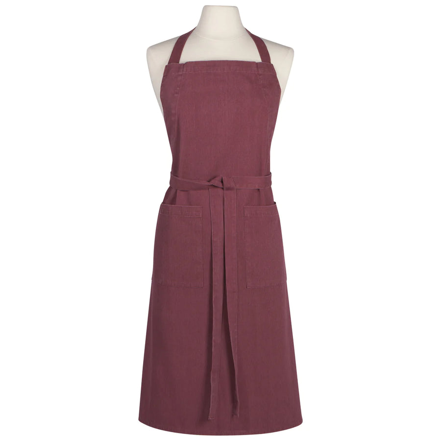 Soft stonewashed cotton gives these aprons a lived-in feel. Their generous size features two pockets, an adjustable strap and a hanging loop for easy merchandising.