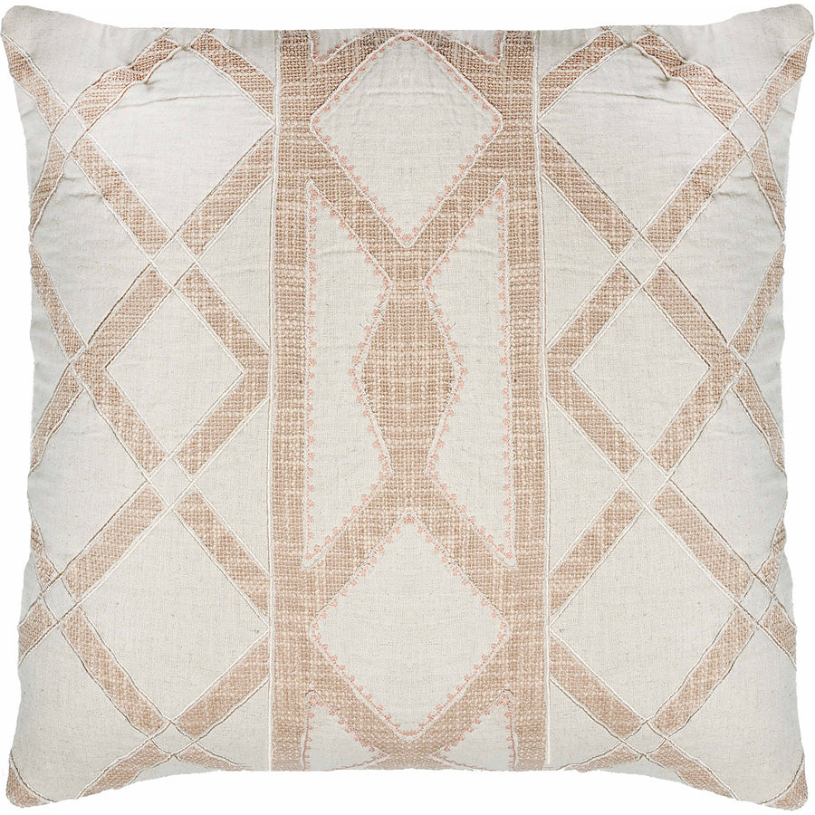 CUSHION COTTON BLOCK PRINTED MULTI-DUSTY ROSE 17X17