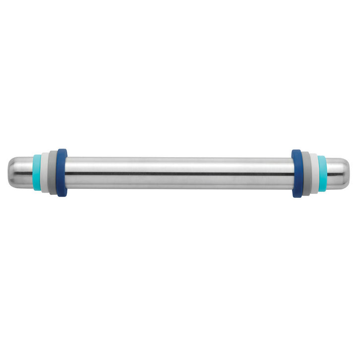 This rolling pin has a smooth, non-stick surface and is made of stainless steel. One of its attractions is that it can be cooled beforehand in the freezer, which makes it easier to work with the dough, which stays fresh longer. Interchangeable silicone rings slip on the ends and are used to adjust the desired thickness of dough.