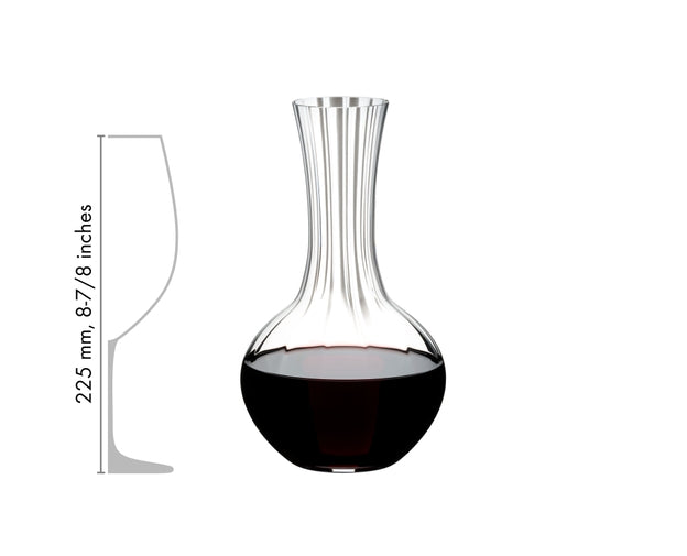Product Details: The Performance decanter was introduced in 2018 as a compliment to the groundbreaking Performance glass series. This machine-made piece features a simple design with optical blown glass. The art of this craft originated in Venice, the cradle of the most superior glassblowing techniques. This decanter is designed for a single bottle of wine.