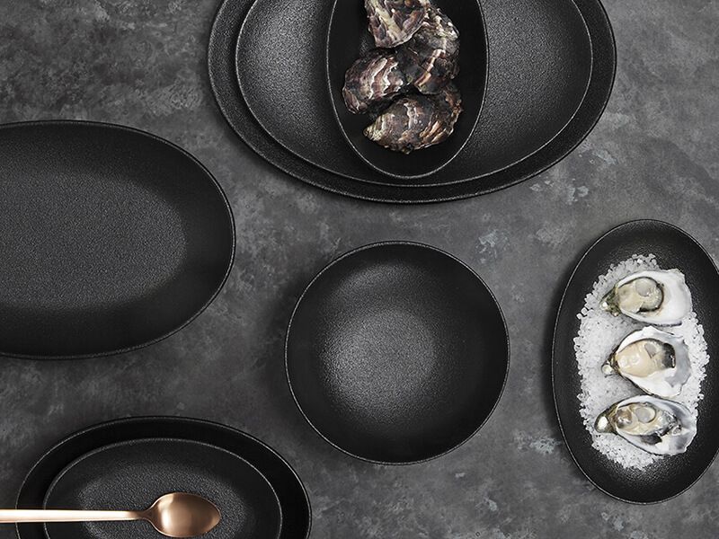 With a contemporary matte black textured finish in a variety of striking oval shapes. Oval shapes. Perfect for parties and potlucks, this range is sure to suit those who like to entertain.