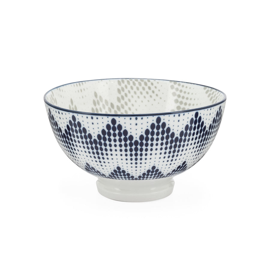Set the table right with this stylish porcelain bowl. The 8 oz bowl is ideal for smaller food servings, snacks, or sauces and dips for a crowd. Part of our popular Kiri Collection of hip, fun and bold colored patterned bowls, plates, and serveware, these are a must-have for any home. Patterns can be mixed and matched to create your own unique display!