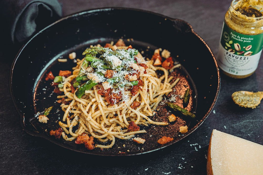 Pistachio pesto is a flavor-packed condiment that will transform your dinners. Despite its Sicilian roots, pistachio pesto pairs with a range of foods - from pasta to pizza! Whether thrown over a simple bowl of spaghetti or as part of an inventive topping for your favorite flatbread, this is one condiment you need in your kitchen.