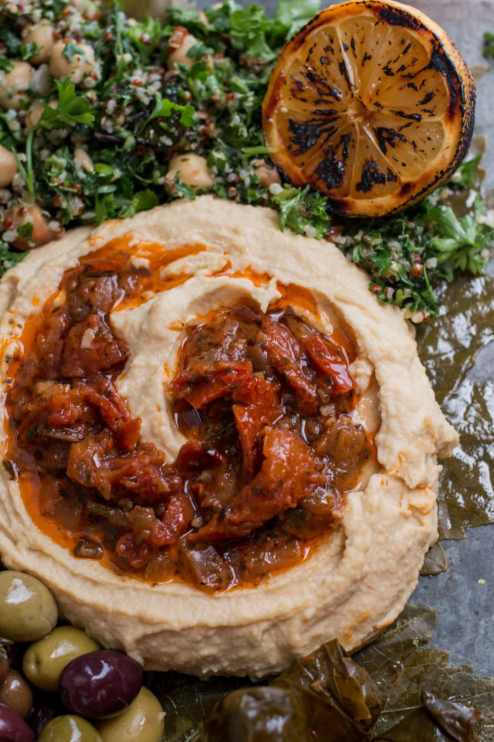 Ingredients: Diced tomatoes (tomatoes, tomato juice, salt, citric acid, calcium chloride), Onions, Oven roasted tomatoes (sundried tomatoes, water, canola oil, onion, salt, sugar, lemon juice, spices, citric acid), Canola oil, Water, Red wine vinegar, Basil, Parsley, Garlic, Sugar, Concentrated lemon juice, Sea salt, Spice, Citric acid