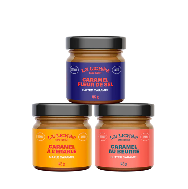 TRIO OF CLASSIC CARAMELS - BUTTERSCOTCH, MAPLE, SALTED CARAMEL (45g each)