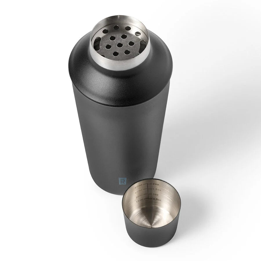 Mix bar-quality cocktails with the RICARDO Black Edition 4-piece cocktail set! It includes a shaker with a silicone seal for a perfect, leak-free fit, a 2-in-1 measuring cap, a muddler, and a mixing spoon. Practical and stylish, it features a built-in strainer and is dishwasher safe for easy cleaning.