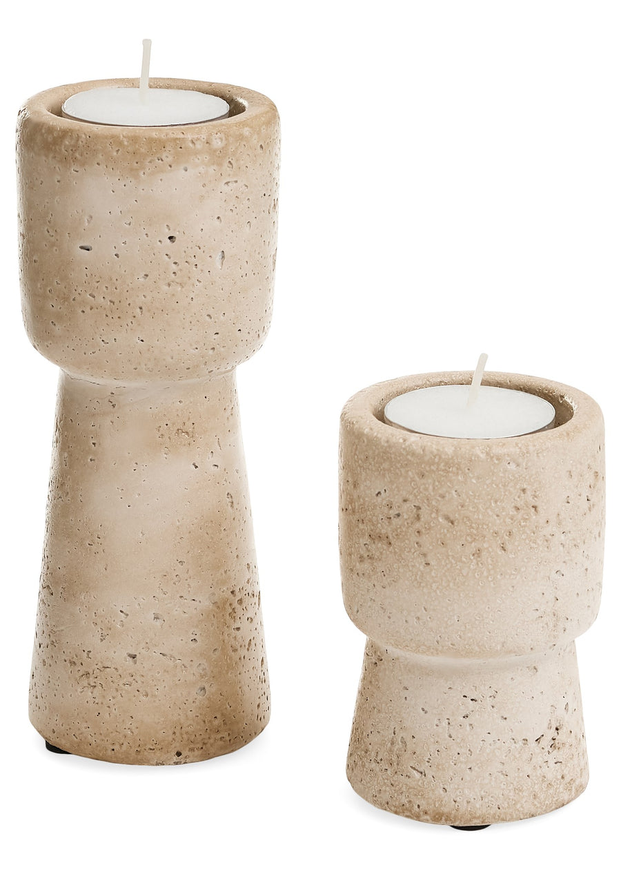 SMALL CEMENT CANDLE HOLDER - TRAVERTINE LOOK BEIGE