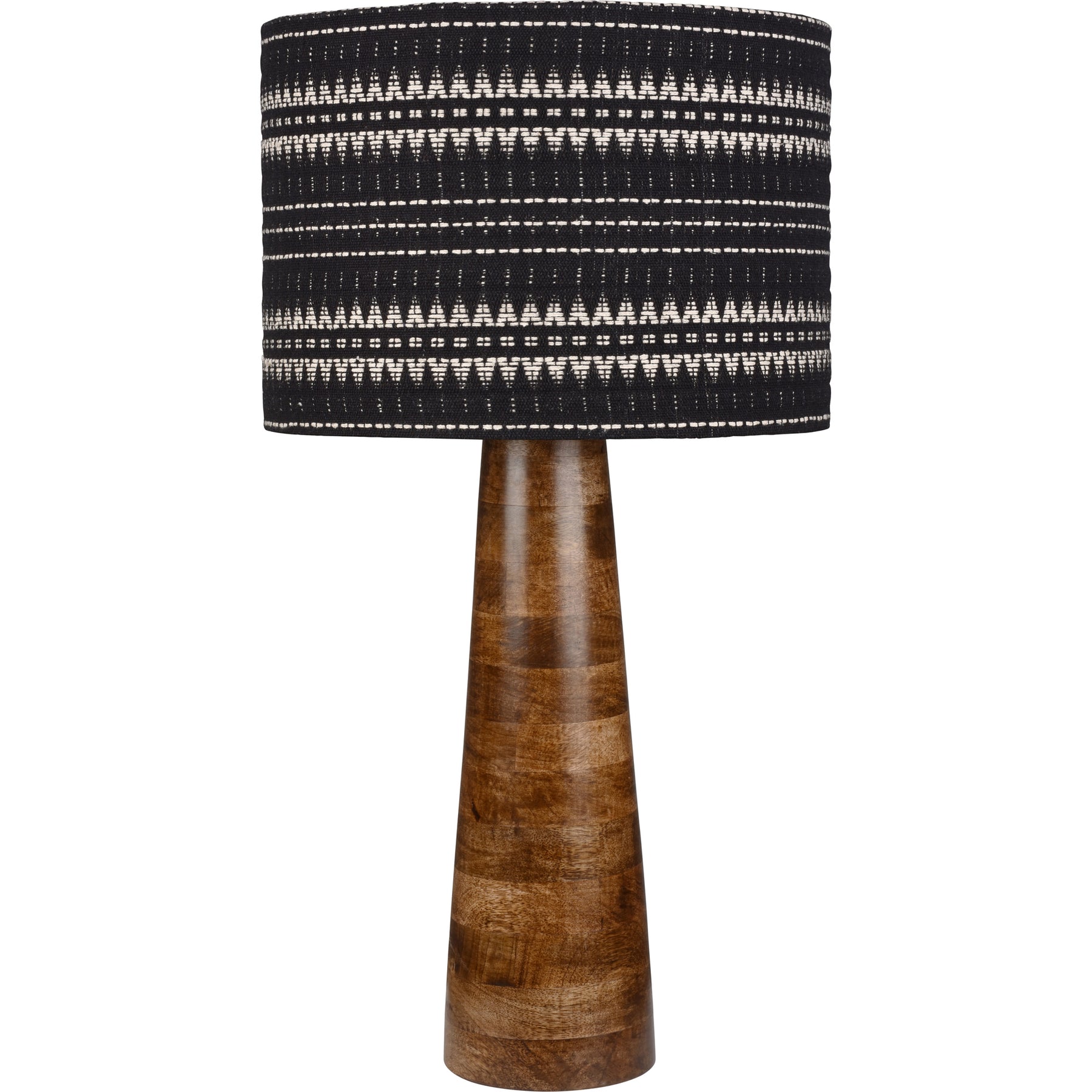• Mango Wood - Walnut Finish - Iron - Antique Brass Finish - Handwoven Cotton Shade