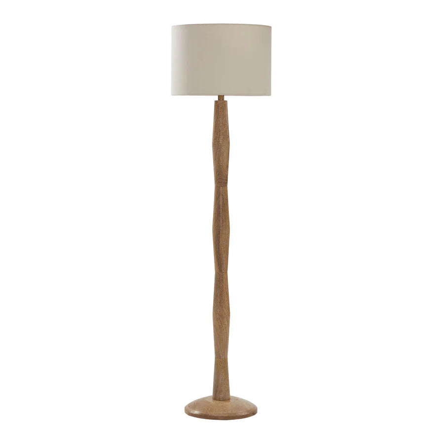 The warm appeal of classic wood design is on full display in this floor lamp. Set within the traditional bedroom or living room interior, it serves as a catalyst for moments of comfort. Featuring natural mango wood and a linen shade, it has a natural color scheme that is effortlessly calming.