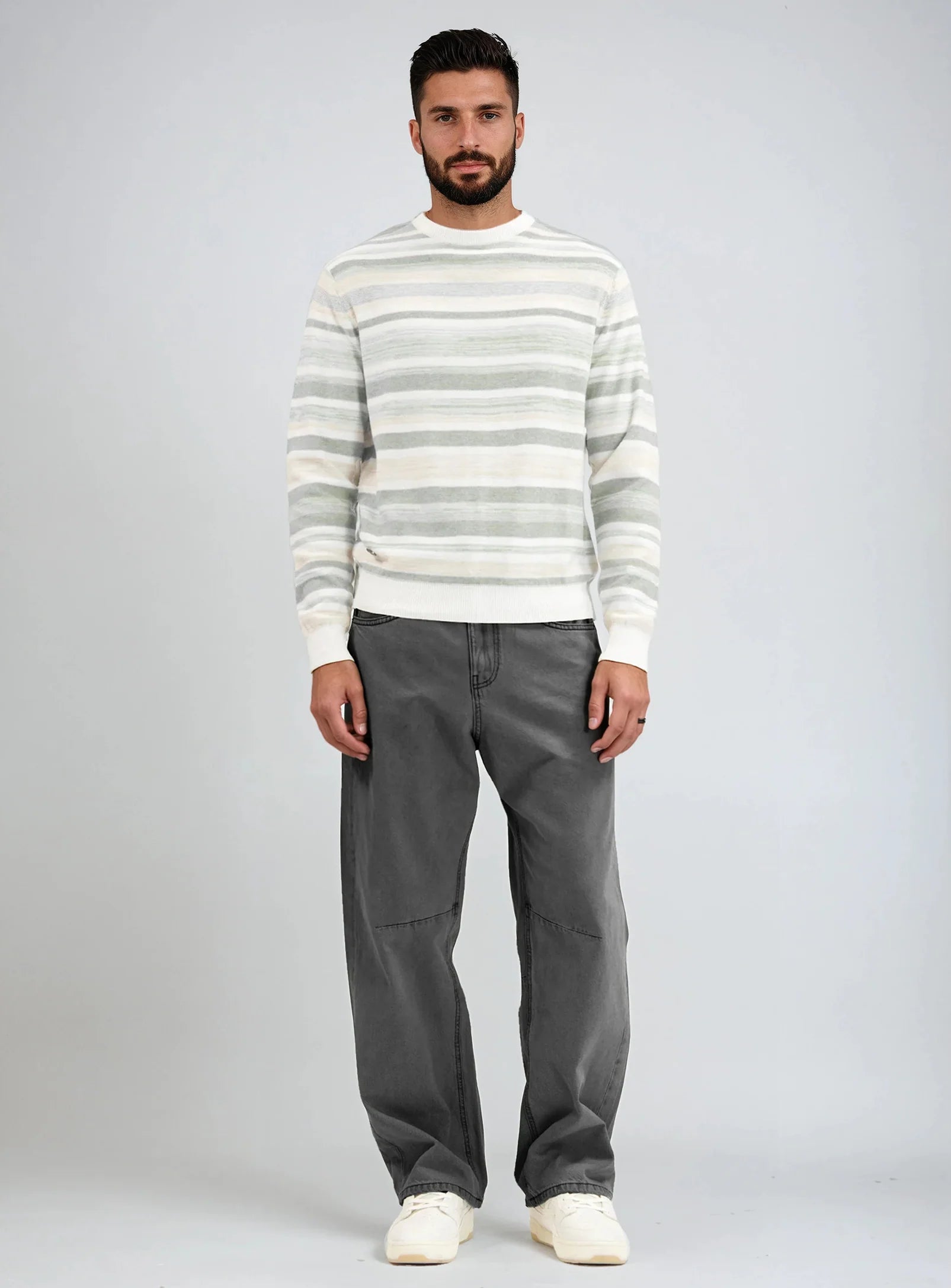 OREN - COTTON CREWNECK STRIPE LONG-SLEEVE SWEATER "BASIL MIX"