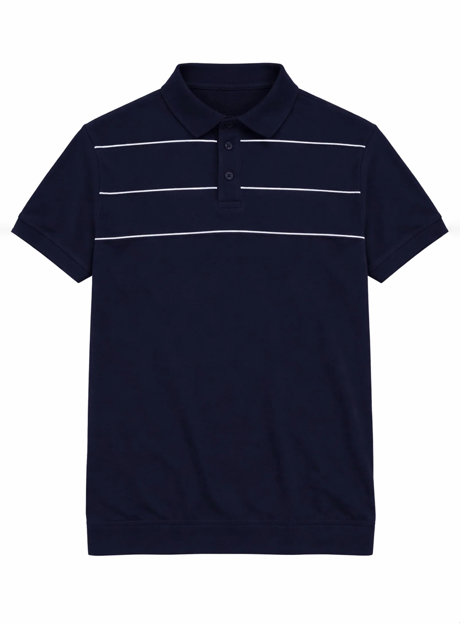 CONNOR - SEMI-FIT TEXTURED KNIT COTTON POLO WITH HORIZONTAL STRIPE "NAVY"