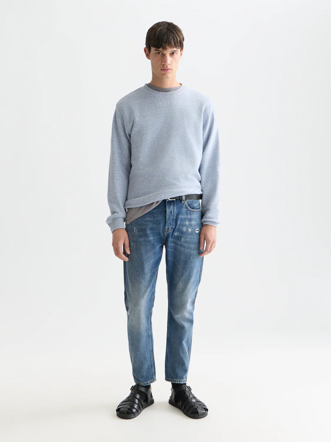 casual staple in soft melange fabric, this crew neck sweatshirt offers everyday ease.