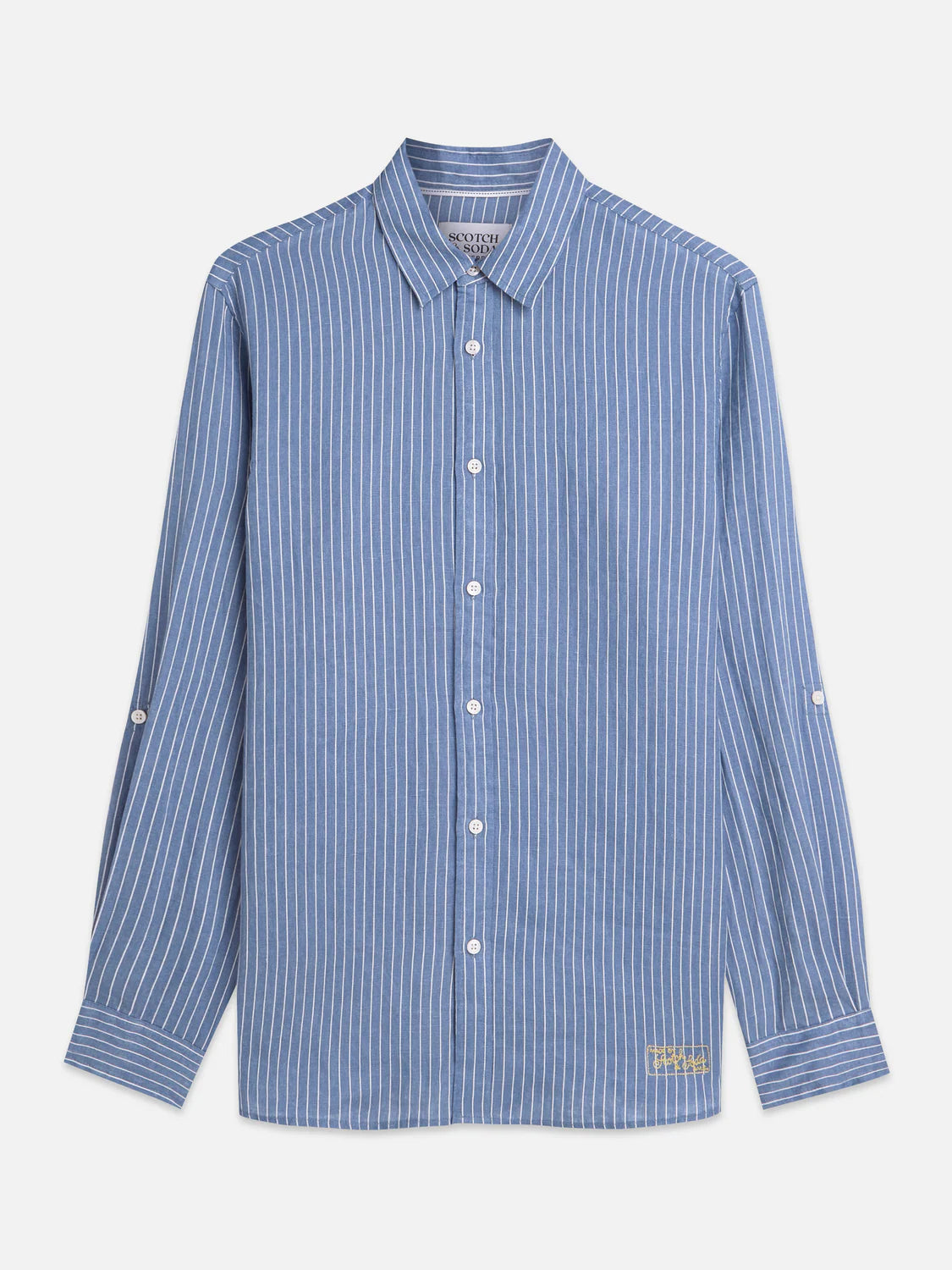 This regular-fit shirt in breathable linen, is finished with a timeless vertical stripe for a refined casual look.
