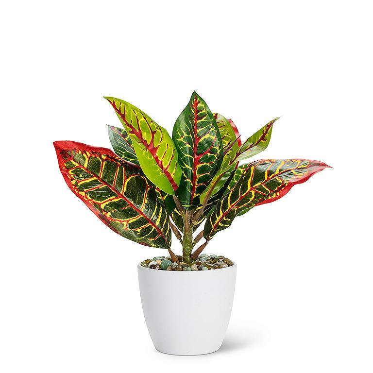 Add the look of lush plant life anywhere with this realistic-looking Medium Variegated Leaf Plant. Crafted out of plastic and polyester, the multicoloured green and red hues of this life-like plant's leaves bring a touch of nature to any space without any mess or maintenance required – complemented by a clean white planter.
