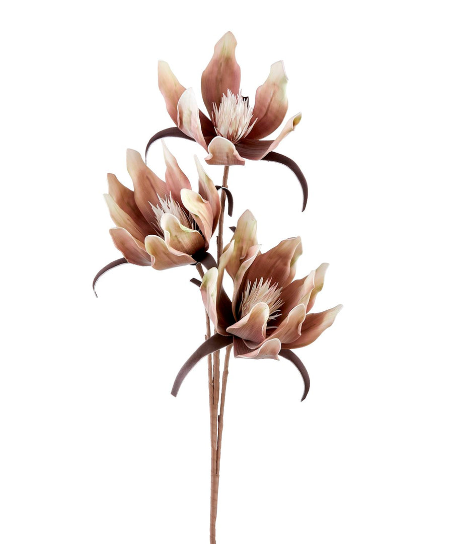 Enhance your space with stunning floral ambiance with this beautiful Pink, Cream & Green Artificial Floral Branch. This faux flower stem features three realistic pink, green and cream blooming flowers on a brown stem that can be styled alone in a vase or combined with other pieces to create an exquisite floral bouquet to bring a touch of nature to your home decor. EVA, Iron Wire, Plastic.