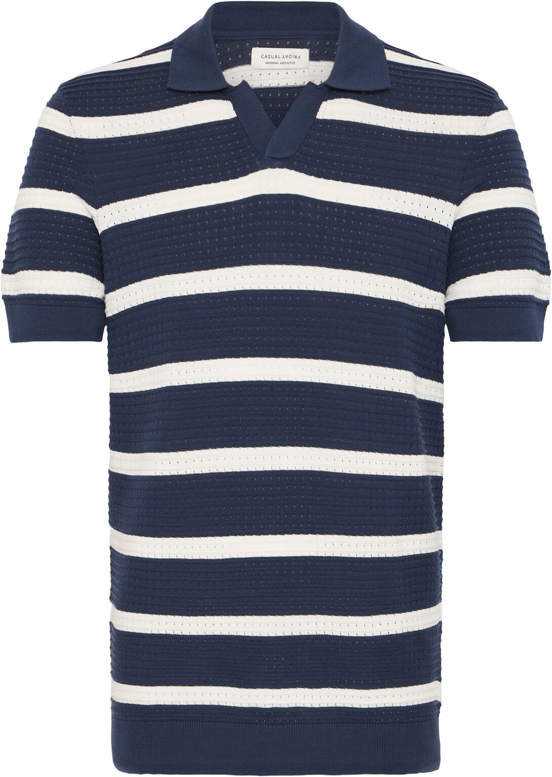 CFDAHLIN SS STRIPED POLO KNIT "NAVY BLAZER"