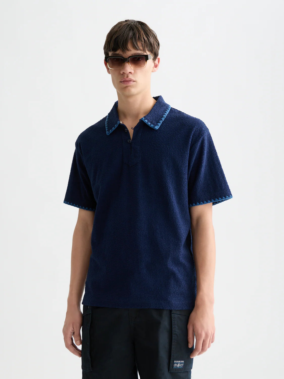 jacquard toweling polo with a relaxed fit and rich texture, adding a soft, elevated feel.