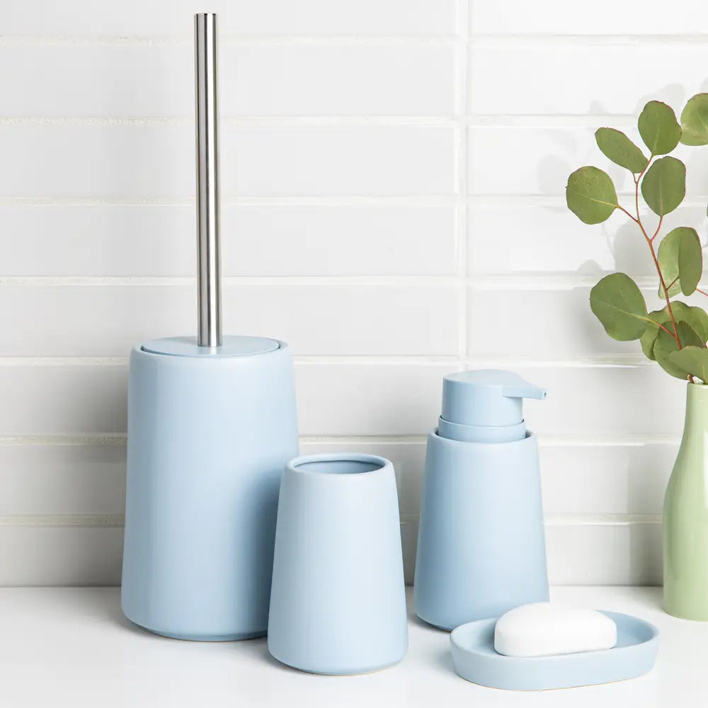 Refresh your bathroom with timeless pieces from the Moda At Home Anitra collection. Works as a toothbrush holder or tumbler, the sleek ceramic construction creates a simple, yet contemporary style to your bathroom countertop.