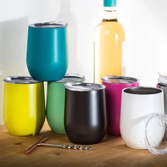 Keep your favourite beverage at the perfect temperature for up to 9 hours with a Bevi insulated cup. Great for wine, too!