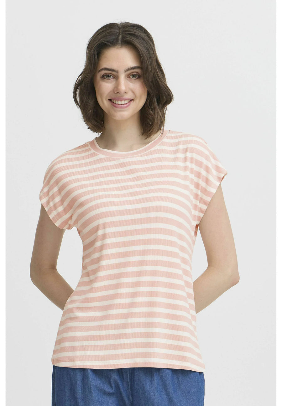 Experience comfort and femininity with our FRCANO TEE in "ROSE SMOKE MIX"! This light pink tee features white stripes, adding a touch of casual charm. Stay cozy and stylish in this effortlessly comfortable top.