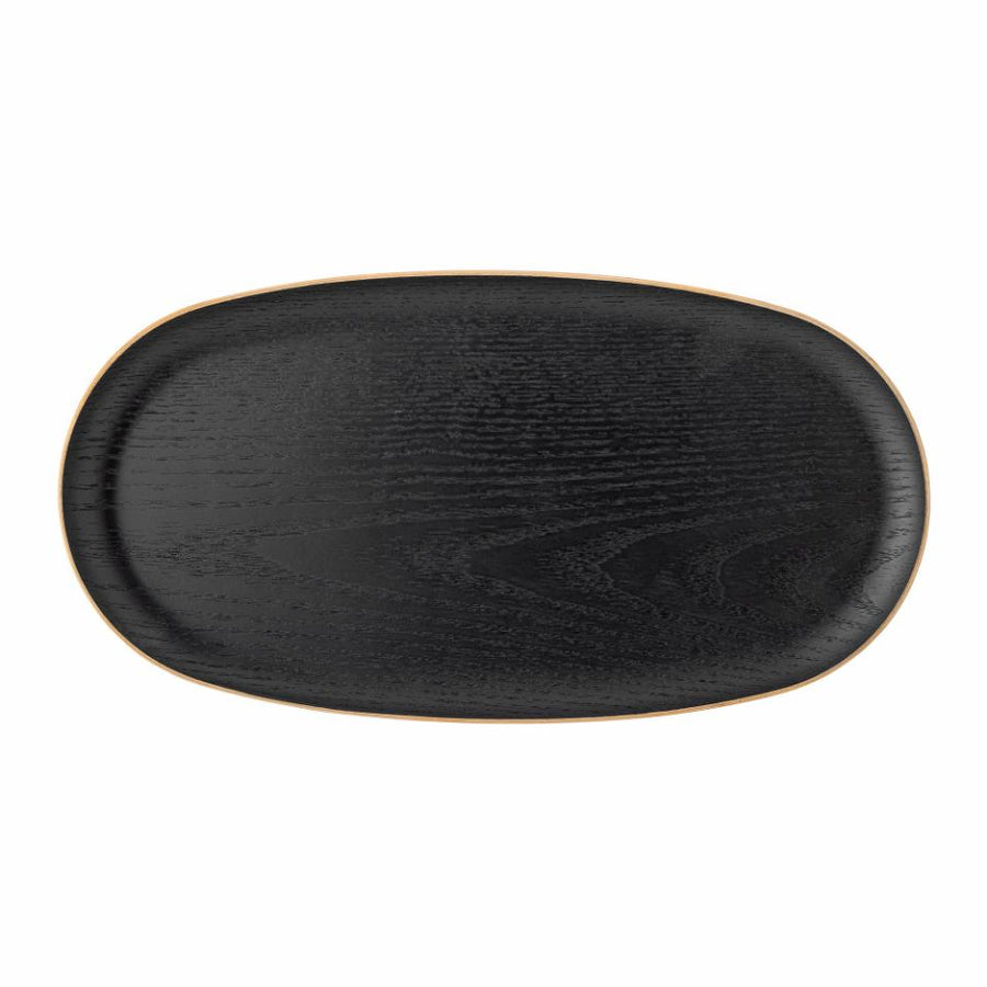 The Leyton Tray by Bloomingville is made of oak veneer – a strong lightweight material. The decorative tray has an elegant simple design, oval shape, and black color.