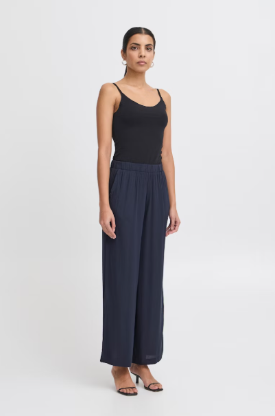 Introducing our IHMARRAKECH TROUSERS "TOTAL ECLIPSE" - the perfect casual fit for any occasion. These stylish navy blue ankle length pants exude effortless charm and versatility. Ideal for a total eclipse of dull, boring outfits!