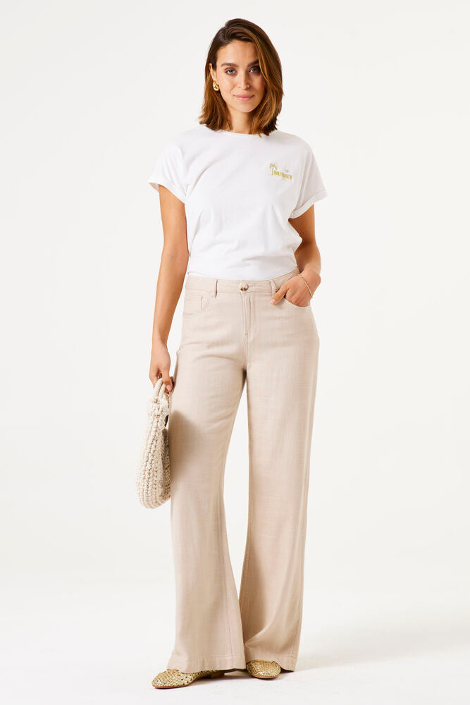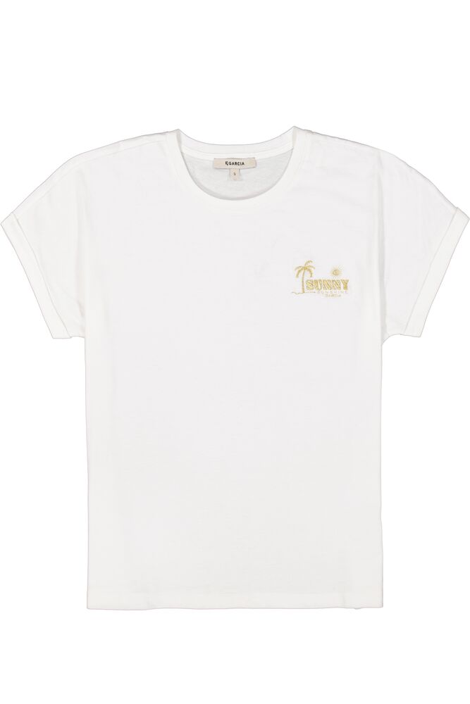 T-shirt with embroidered chest print. A cool basic that can be worn year-round. This T-shirt features short turned-up sleeves, a round neck, and a dropped shoulder fit. This item is made from 50% cotton and 50% recycled cotton.