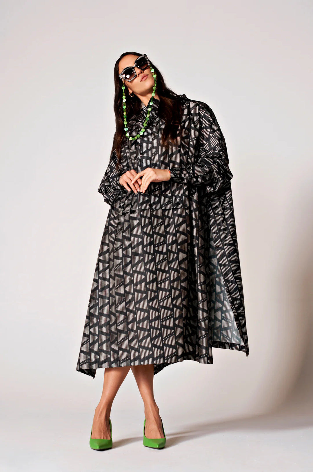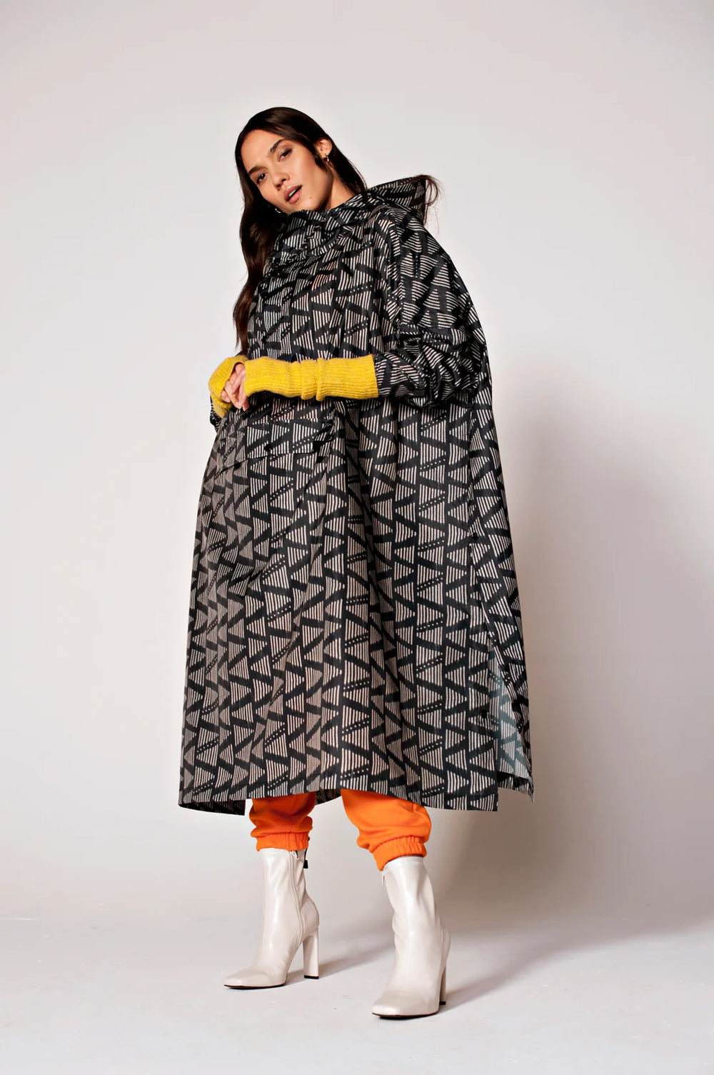 What happens when you give your design team a traditional woven fabric? You get the beautiful Moa rain poncho. This two-tone print of navy and light grey beautifully combined to recreate a weaving technique on a digital canvas.