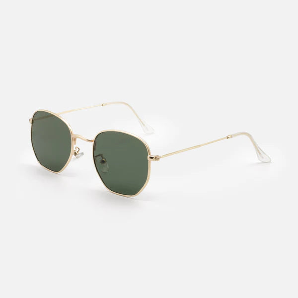 GOLD RIMMED SUNGLASSES WITH GREEN LENSES