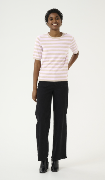 Knitted top with wide sleeves, round neckline and a straight fit. Features a soft texture and ribbed trims for a clean and relaxed silhouette. Regular fit, Short sleeve, 80% Viscose, 20% Nylon.