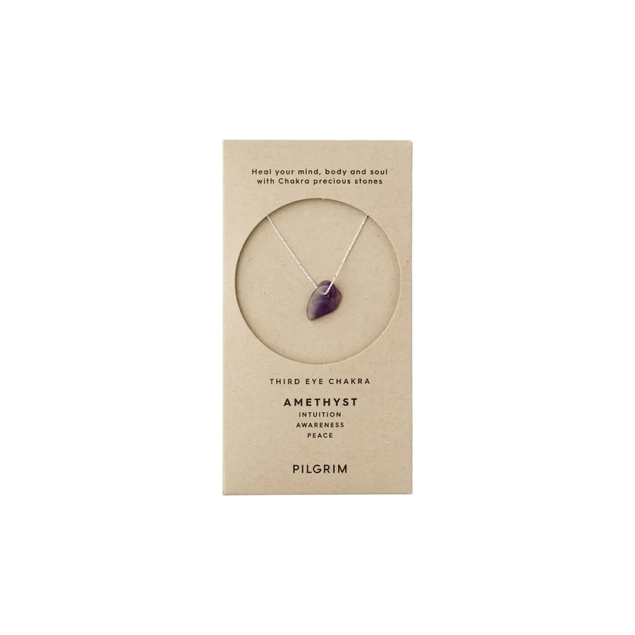 The Third Eye Chakra is represented by a purple amethyst semi-precious stone. The Third Eye is your intuition, awareness and peace. The stone is meant to clear the mind and enhance focus and mental presence for a sense of purpose and relief of stress.