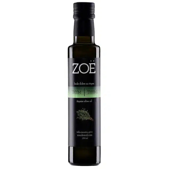 Our koroneiki olives are gently infused together with our home grown fresh thyme releasing the distinct aromas and oils of the herb. The flavours of the thyme combined with the peppery freshness of the extra virgin olive oil is delightful. This oil is especially flavourful with roasted or grilled meats, vegetables, seafood and chicken.
