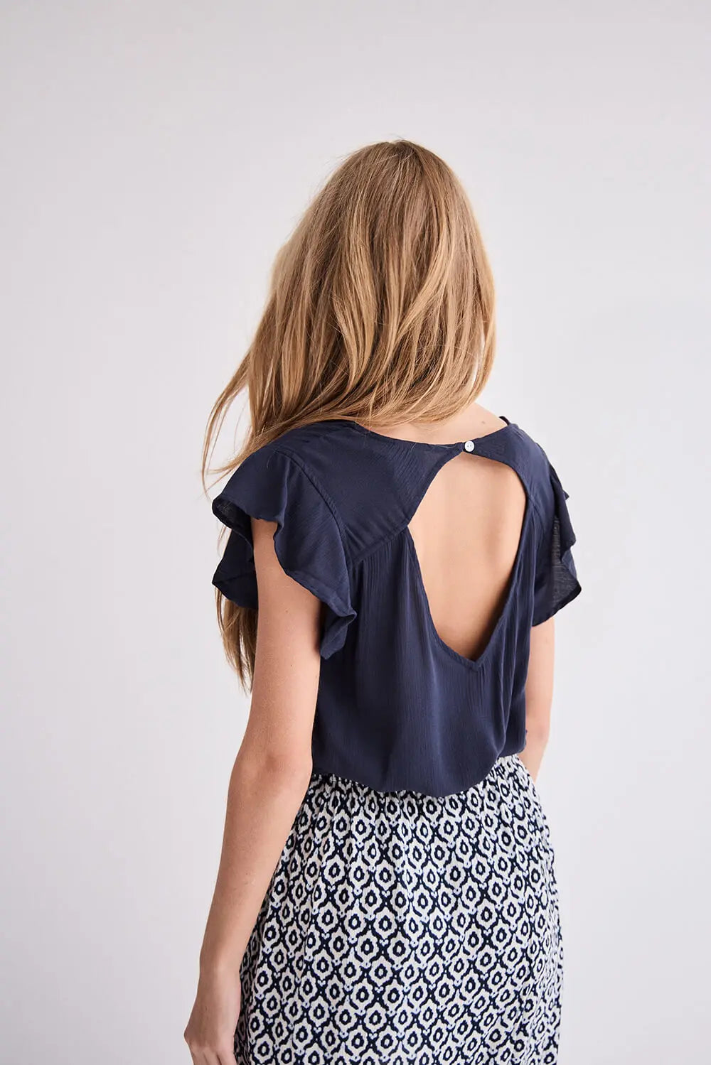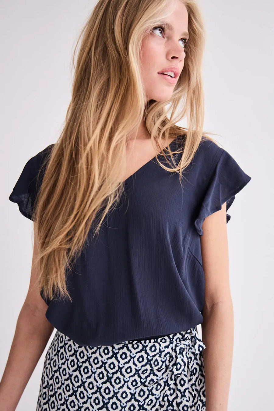 Elevate your everyday style with our IHMARRAKECH TOP in "TOTAL ECLIPSE"! This navy blue t-shirt features short sleeves and a feminine design, perfect for a casual yet chic look. Enjoy comfort and style with this versatile top.