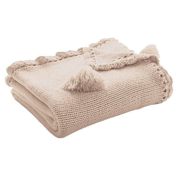 • Beige knit throw with tassels