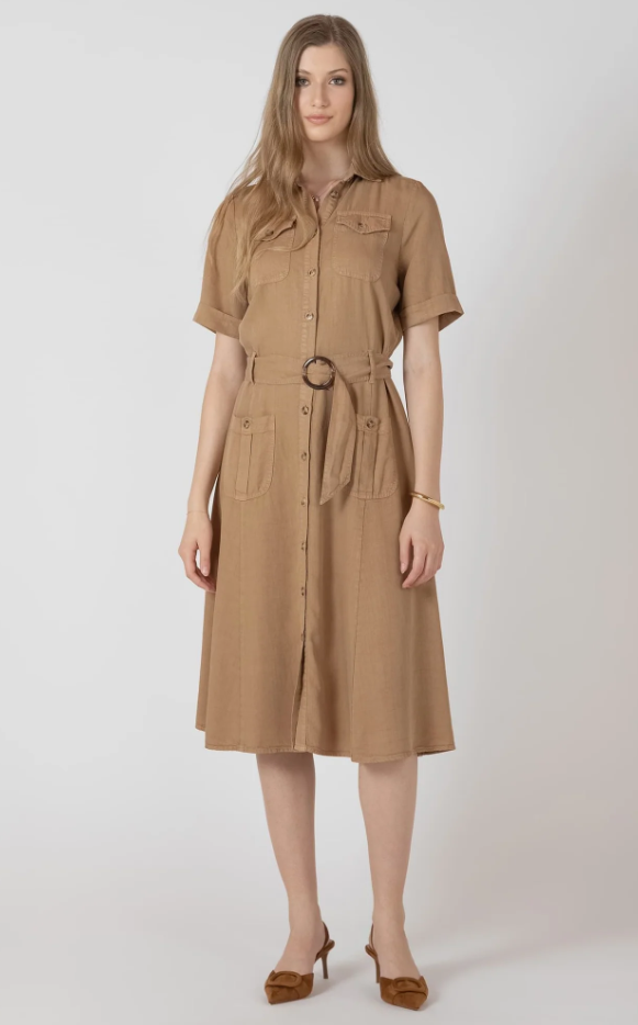 BELTED UTILITY MIDI DRESS "CAFE AU LAIT"