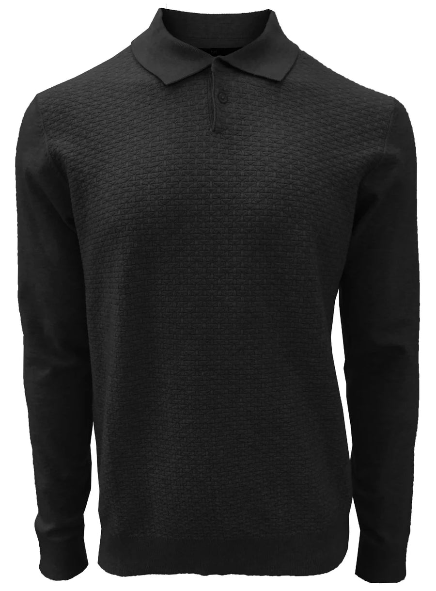 LOLAN CASHMERE-LIKE POLO SWEATER - BLACK